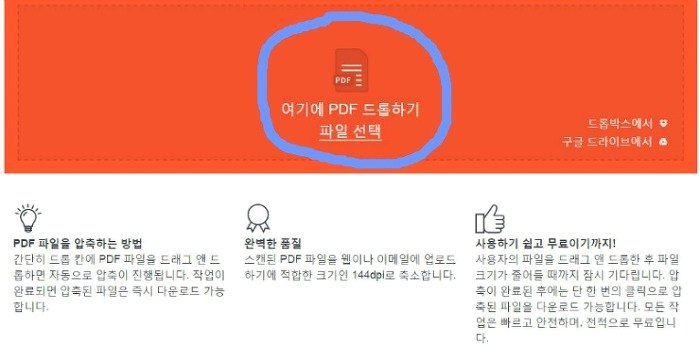 pdf 용량줄이기 메뉴를 선택해주셨다면위에 보이는 화면처럼 보일건데요.저위에 대상File을 저기에 드래그엔드롭을 해주시기바랍니다.마우스로 끌어다가 저기에 놓으시면 끝이기도 한데요.